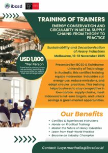 Dengan cohort ideal 10–25 peserta, ToT ini akan membangun kapasitas nasional dalam mendorong dekarbonisasi industri berat dan memastikan Indonesia siap menghadapi tuntutan global terhadap rantai pasok hijau.